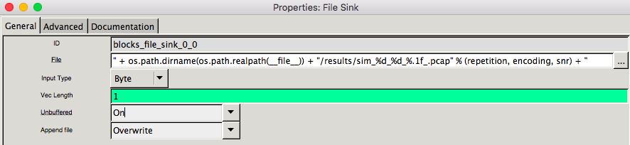 For the first set of simulations, I was only interested in the packet delivery ratio and decided to use PCAP packet captures as log files. To avoid that individual runs overwrite each others file, the file name has to depend on the input parameters.