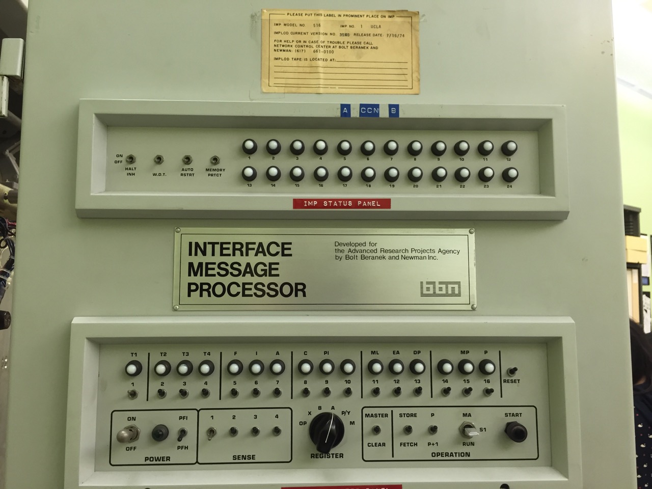 The Interface Message Processor (IMP) is the big refrigerator-sized box with the crazy wiring, which was basically the first modem.