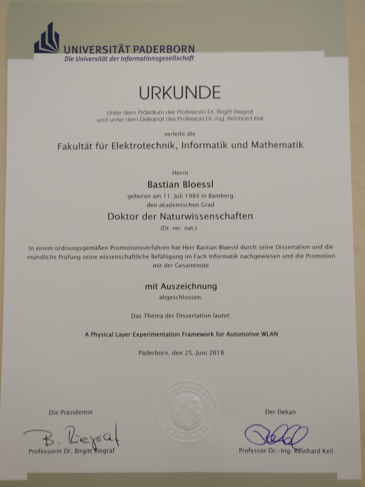 It took Paderborn University over ten weeks until they found someone who was able to press the “Print”-button, but they made it and I am finally allowed to call myself a doctor. Yay!